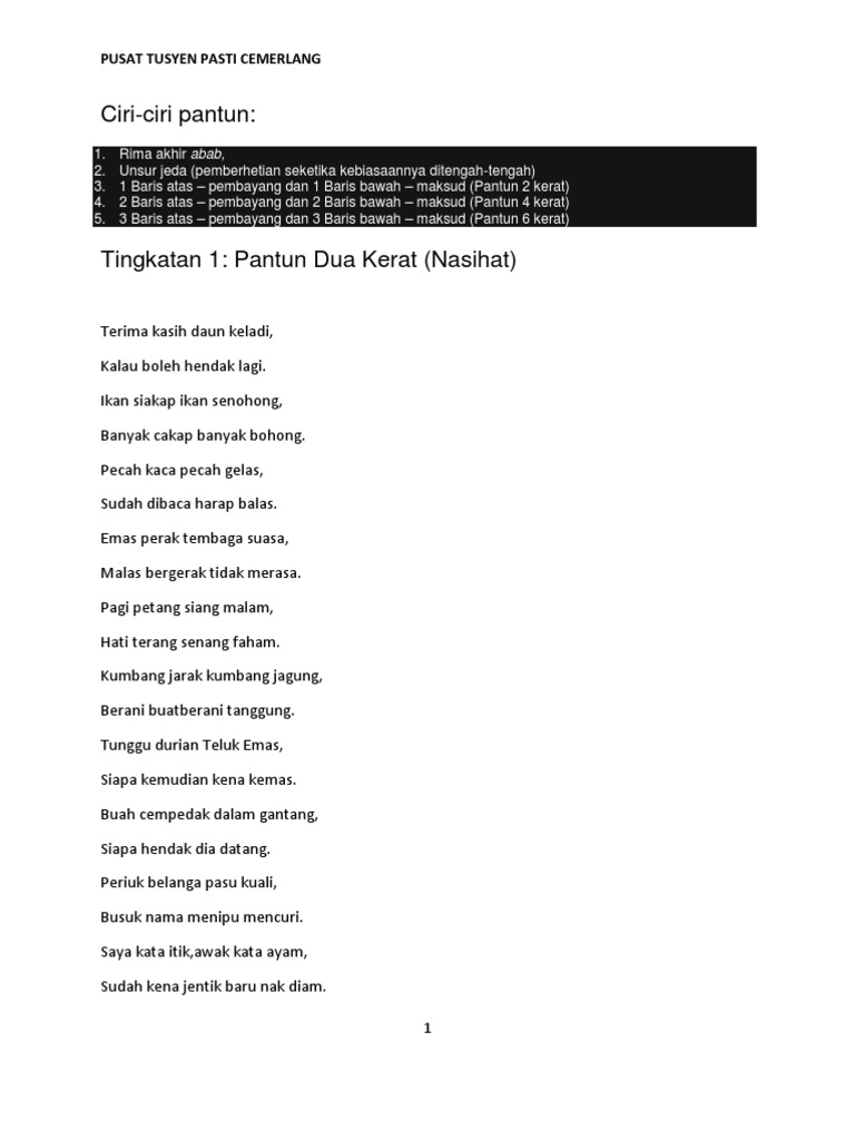 Puisi Tradisional Pantun Dua Kerat Nasihat Tingkatan 1 Padankan. Pantun nasihat komsas tingkatan 2. Tak tahutak kenaldiam baik mendiamkan diri daripada berkata-kata.